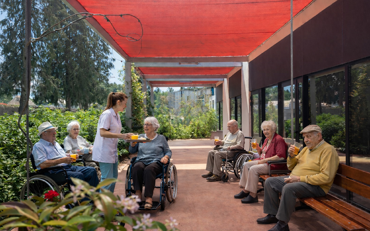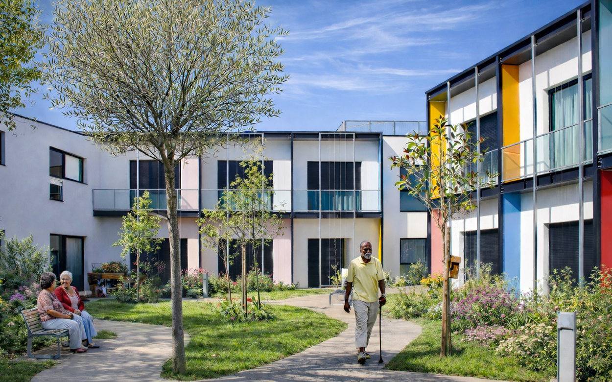 La mise de plain-pied sur deux niveaux propose une qualité de vie pour les résidents, les familles et le personnel, qui bénéficient alors d'un rapport d'usage direct au terrain et d'une sécurité évidente.