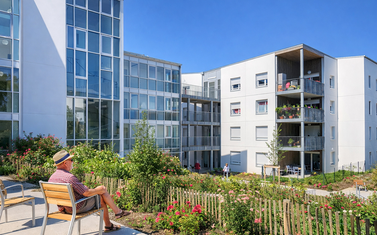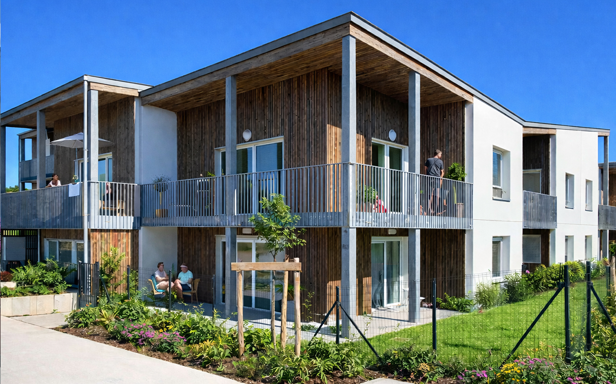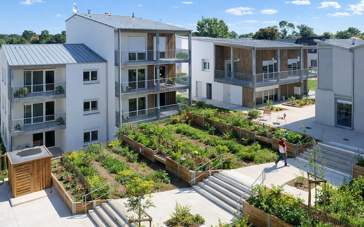 Notre projet s’installe tout naturellement dans la pente du terrain. Les gabarits des petits collectifs ou des logements intermédiaires sont progressifs d’Est en Ouest du R+1 au R+3 avec deux niveaux d’accès.