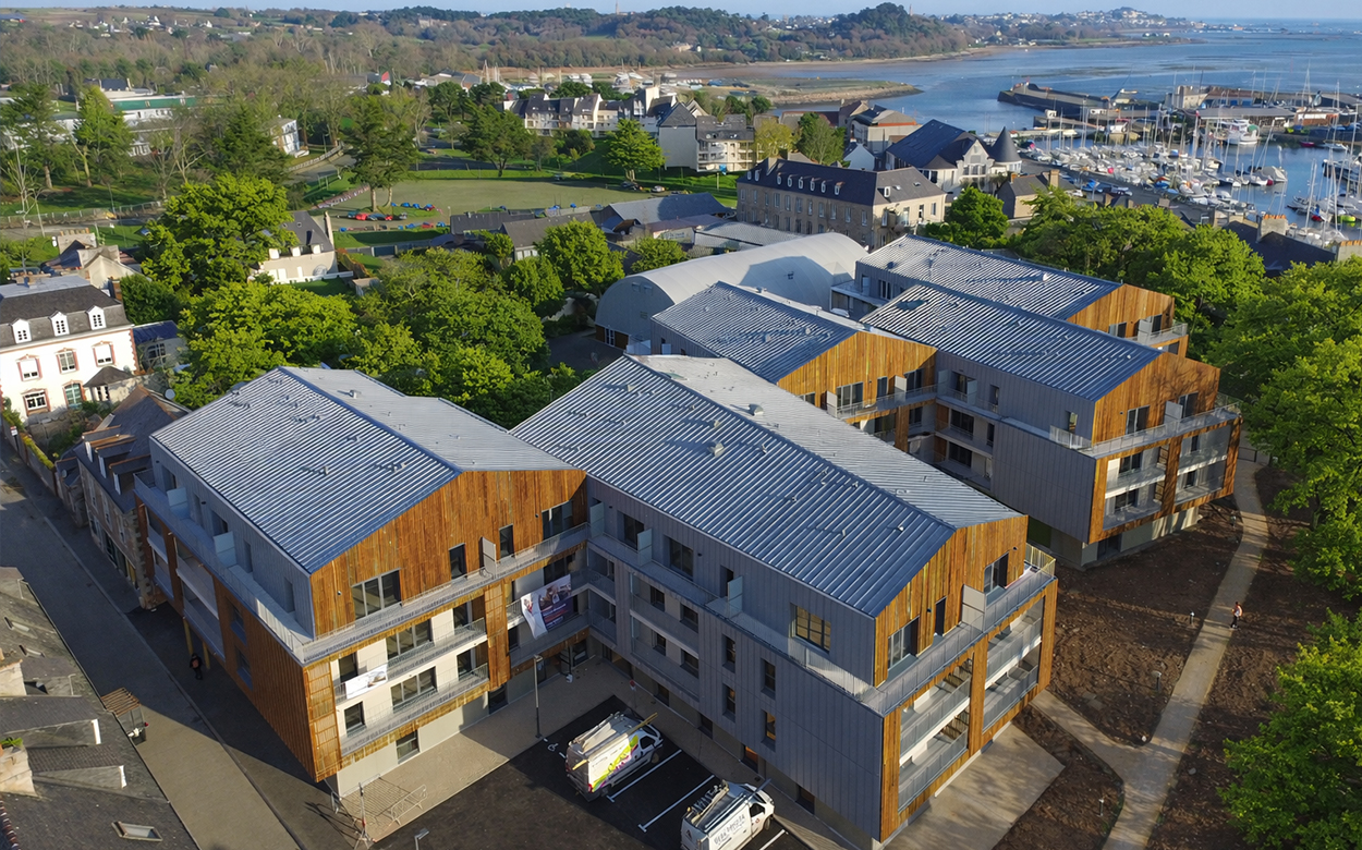 Le projet est décomposé en bâtiments qui glissent les uns par rapport aux autres, permettant ainsi de multiplier les vues. Aucun logement n’est orienté nord, et certains disposent d’une double orientation.